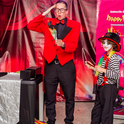 El sonido, las luces audioritmicas y los efectos como burbujas, cámara de humo, ventury envuelven a los invitados y los transportan al mundo mágico del circo.